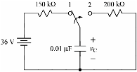 After being on side 1 for a long time, the switch moves from side 1 to side 2 at t = 0.