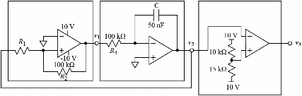 b) Choose an allowed value for R1 and calculate the period of v2(t).